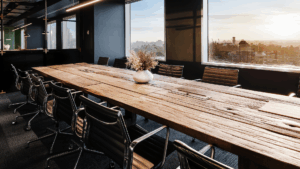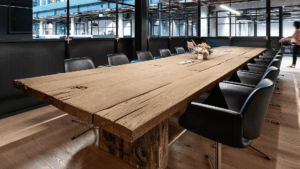 Boardrooms are where ideas are challenged and decisions are made. The presence of these timber tables helps set that scene—not flashy or fussy, but quietly powerful. They offer contrast to the clean lines and modern touches around them, grounding the space with texture, history, and soul.
